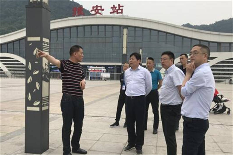 在雅安火車站站前廣場,朱濤一行詳細(xì)了解了行李滑道建設(shè)項目、地下停車場、安全提示標(biāo)識等方面的情況,并聽取了簡智勇就相關(guān)事宜的匯報。