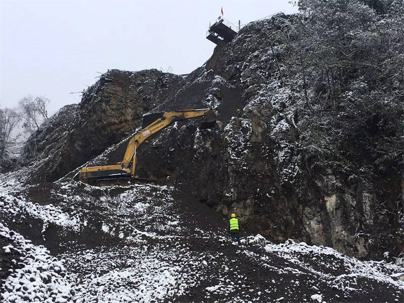 目前,廠區(qū)共8輛車在運行施工,主要用施工材料運輸,啟動3臺挖機進(jìn)行礦山防護(hù)網(wǎng)安裝,初步完成安裝礦山防護(hù)網(wǎng)的前期準(zhǔn)備工作。2月15日,舉行復(fù)工儀式,天全縣相關(guān)部門對項目進(jìn)行復(fù)工資料驗收檢查,已具備開工條件。丹石公司員工正迎著風(fēng)雪在大山上加緊施工,確保魚泉獅子山礦山開采項目能夠盡快完工。