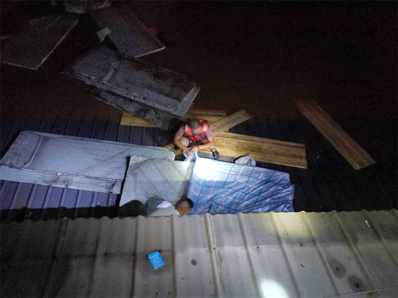 “感謝3名值班人員及時(shí)打電話通知我,否則后果不堪設(shè)想!焙喚纯f,回想起昨晚的情形,心里還是有些后怕。當(dāng)時(shí),他接到值班人員電話后,發(fā)現(xiàn)門衛(wèi)室外的洪水已經(jīng)逼近脖子,無法順利撤離,洪水漲勢又快,不一會(huì)兒,他只得爬上門衛(wèi)室頂端才能避免被水淹沒。后來,洪水沖來了一棵樹,簡敬奎借助這棵樹慢慢轉(zhuǎn)移到了附近一棵較高大的樹上繼續(xù)躲避,直至黃志和方華軍前來營救。