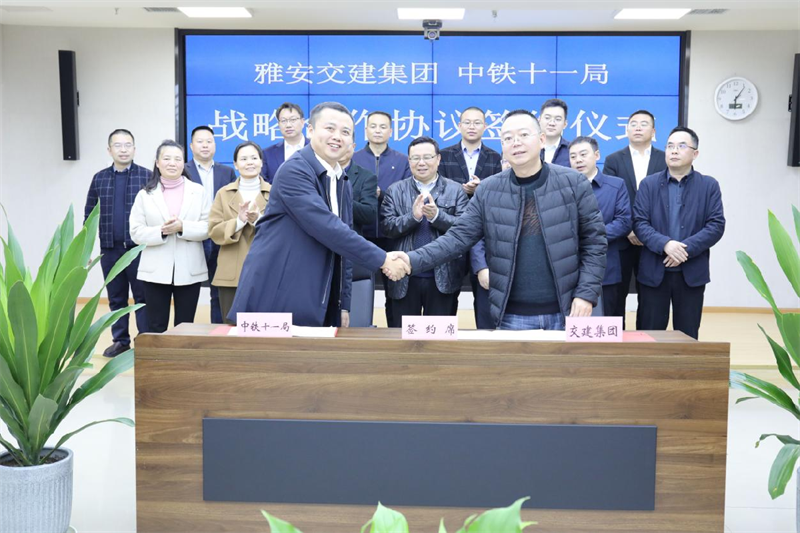 11月2日,雅安交建集團(tuán)與中鐵十一局集團(tuán)有限公司簽署戰(zhàn)略合作協(xié)議。集團(tuán)黨委書記、董事長(zhǎng)漆家華,中鐵十一局集團(tuán)公司四川區(qū)域總經(jīng)理呂 涵參加并見證簽約儀式,集團(tuán)黨委副書記、總經(jīng)理羅倫全與中鐵十一局集團(tuán)四川區(qū)域副總經(jīng)理吳江偉代表雙方簽約。集團(tuán)領(lǐng)導(dǎo)張萬(wàn)清、張勝利、丁春、陸鷗、程學(xué)強(qiáng),中鐵十一局四川區(qū)域副總經(jīng)理田景發(fā)以及四公司、五公司相關(guān)負(fù)責(zé)人見證簽約和座談交流。