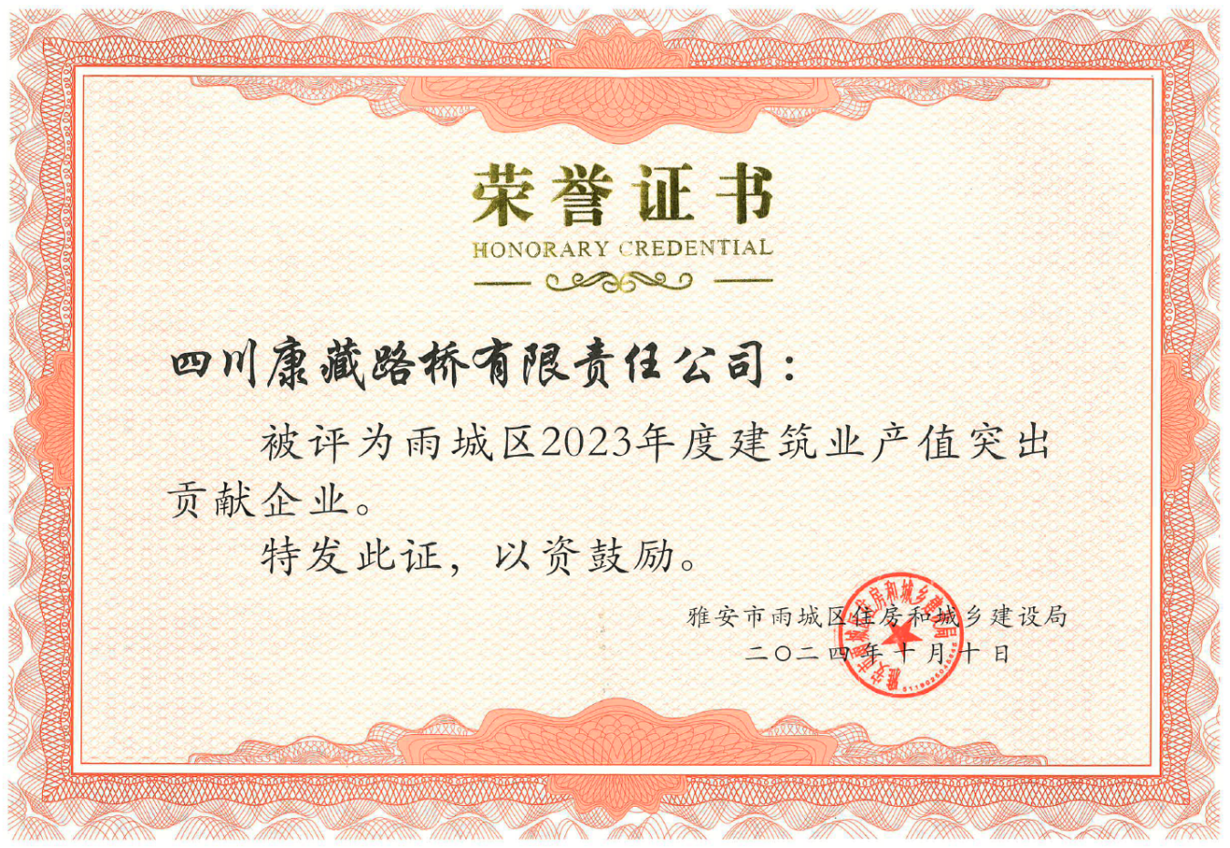 今年10月,路橋公司被雅安市雨城區(qū)住房和城鄉(xiāng)建設(shè)局評為“雨城區(qū)2023年度建筑業(yè)產(chǎn)值突出貢獻(xiàn)企業(yè)”。下一步,路橋公司將持續(xù)貫徹落實(shí)市委、市政府決策部署,把學(xué)習(xí)貫徹落實(shí)黨的二十大精神與生產(chǎn)經(jīng)營工作結(jié)合起來,發(fā)揮項(xiàng)目引領(lǐng)支撐作用,為地方經(jīng)濟(jì)的發(fā)展持續(xù)貢獻(xiàn)力量。