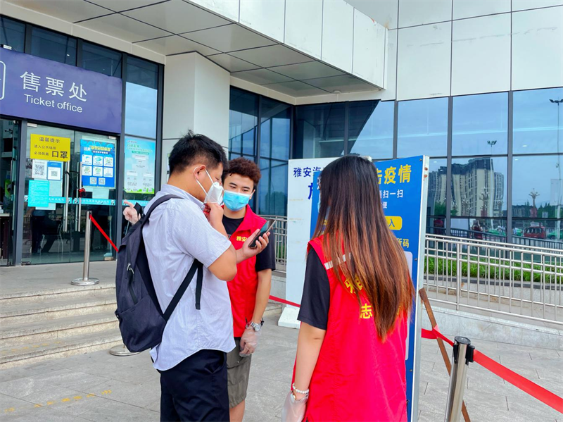 青年志愿者們嚴(yán)格遵守雅安市汽車客運(yùn)站站長葛舉康為大家講解的疫情防控工作要求,積極投身志愿服務(wù),分別在雅安市火車站進(jìn)出站口、雅安市汽車客運(yùn)站進(jìn)站口、售票大廳、候車廳等點(diǎn)位駐守,勸導(dǎo)旅客戴好口罩、查驗(yàn)場所碼、行程碼及核酸報告,并向乘客宣傳疫情防控知識,時刻提醒旅客保持安全距離,認(rèn)真維護(hù)現(xiàn)場秩序。