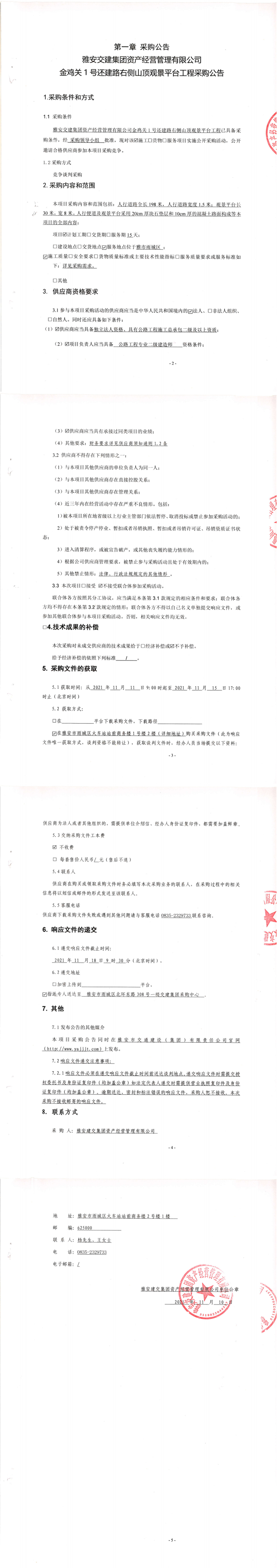 雅安交建集團資產(chǎn)經(jīng)營管理有限公司金雞關1號還建路右側(cè)山頂觀景平臺工程采購公告