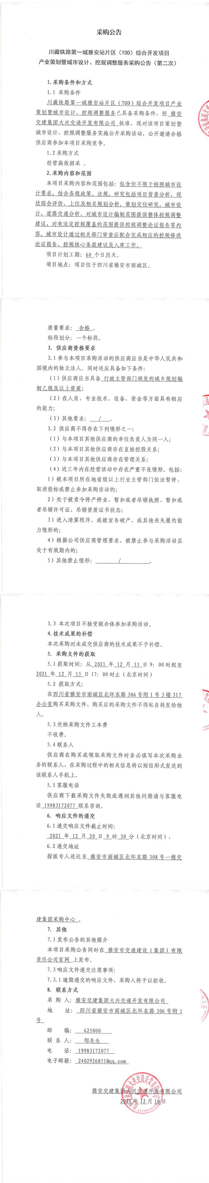雅安交建集團大興交通開發(fā)有限公司川藏鐵路第一城雅安站片區(qū)(TOD)綜合開發(fā)項目產業(yè)策劃暨城市設計、控規(guī)調整服務采購公告(第二次)