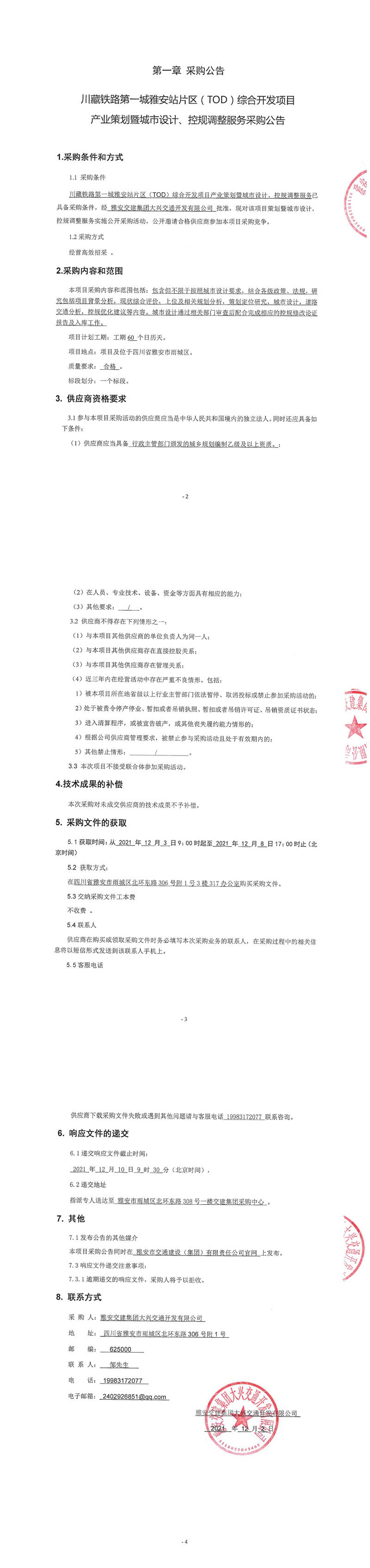 雅安交建集團大興交通開發(fā)有限公司川藏鐵路第一城雅安站片區(qū)(TOD)綜合開發(fā)項目產業(yè)策劃暨城市設計、控規(guī)調整服務采購公告
