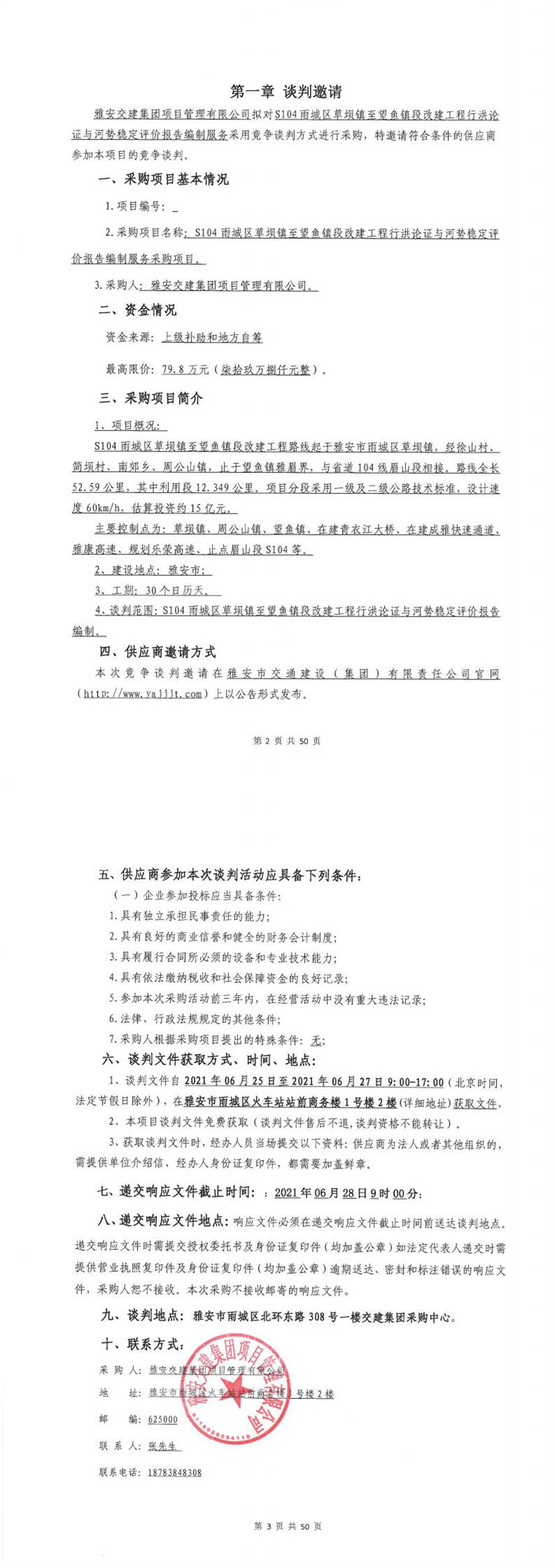 雅安交建集團(tuán)項(xiàng)目管理有限公司S104雨城區(qū)草壩鎮(zhèn)至望魚(yú)鎮(zhèn)段改建工程行洪論證與河勢(shì)穩(wěn)定評(píng)價(jià)報(bào)告編制服務(wù)采購(gòu)項(xiàng)目競(jìng)爭(zhēng)談判公告