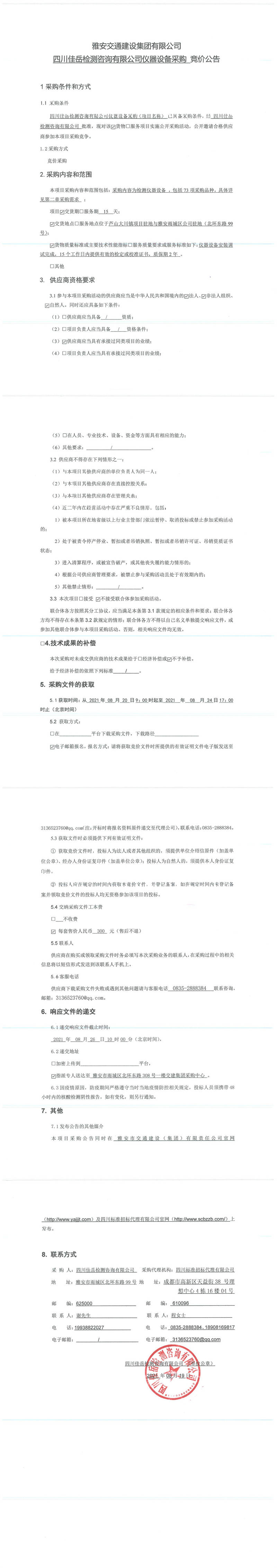 雅安交通建設(shè)集團(tuán)有限公司四川佳岳檢測咨詢有限公司儀器設(shè)備采購競價公告