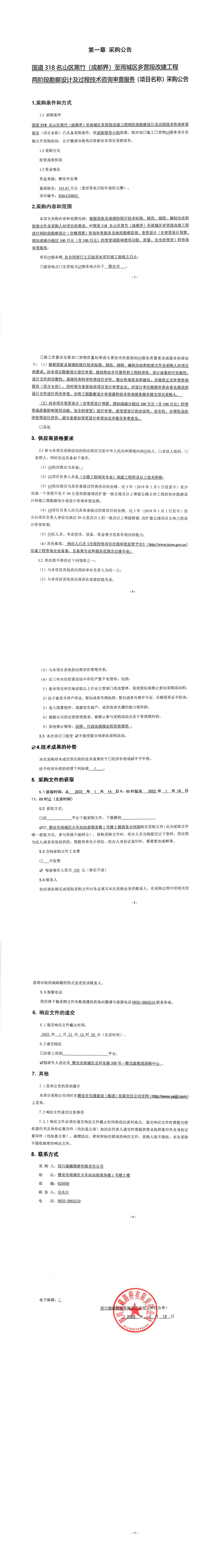 四川康藏路橋有限責(zé)任公司國道318名山區(qū)黑竹(成都界)至雨城區(qū)多營段改建工程兩階段勘察設(shè)計(jì)及過程技術(shù)咨詢審查服務(wù)采購公告
