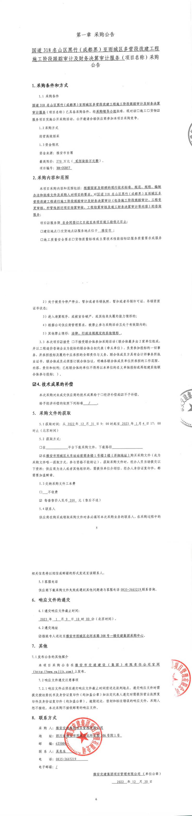 雅安交建集團項目管理有限公司國道318名山區(qū)黑竹(成都界)至雨城區(qū)多營段改建工程施工階段跟蹤審計及財務(wù)決算審計服務(wù)采購公告