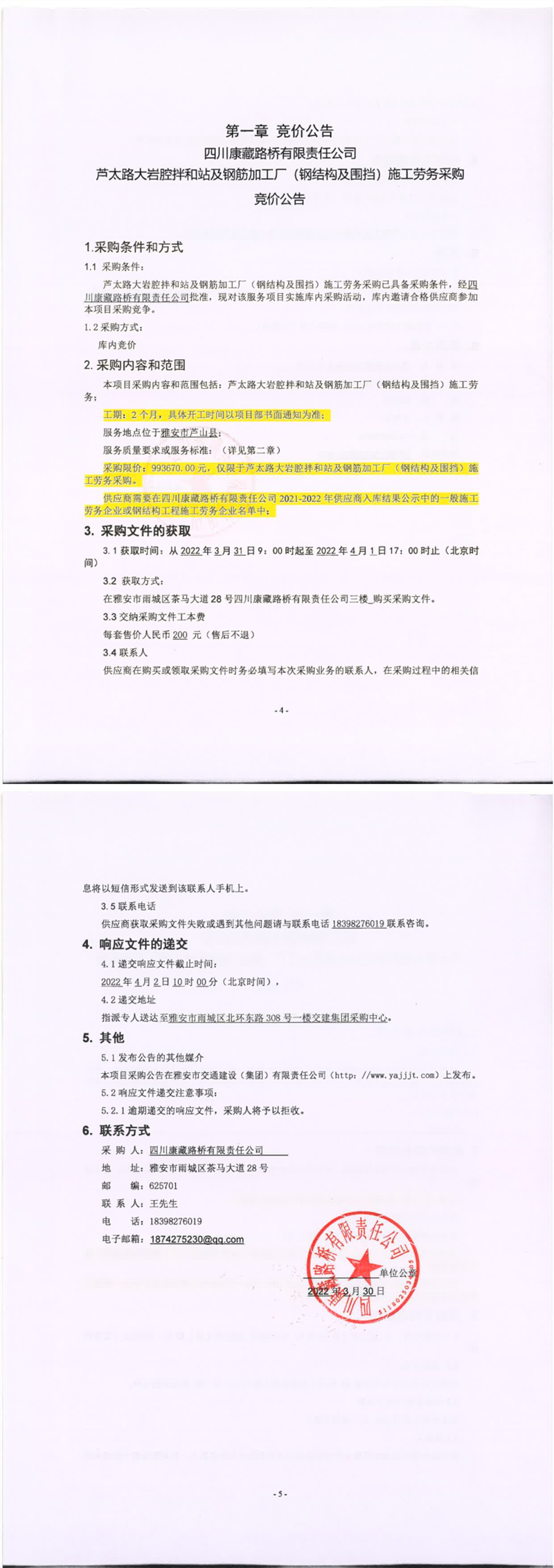 四川康藏路橋有限責任公司蘆太路大巖腔拌和站及鋼筋加工廠(鋼結(jié)構(gòu)及圍檔)施工勞務采購競價公告