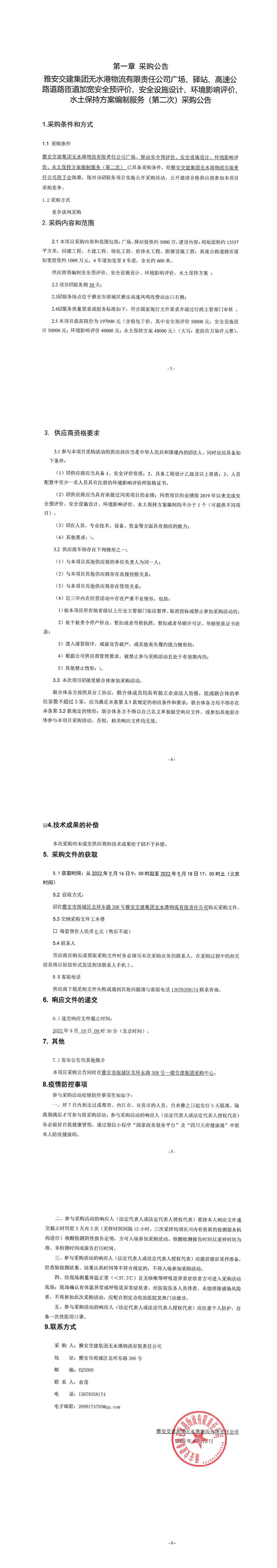 雅安交建集團(tuán)無水港物流有限責(zé)任公司廣場、驛站、高速公路道路匝道加寬安全預(yù)評價、安全設(shè)施設(shè)計、環(huán)境影響評價、水土保持方案編制服務(wù)(第二次)采購公告