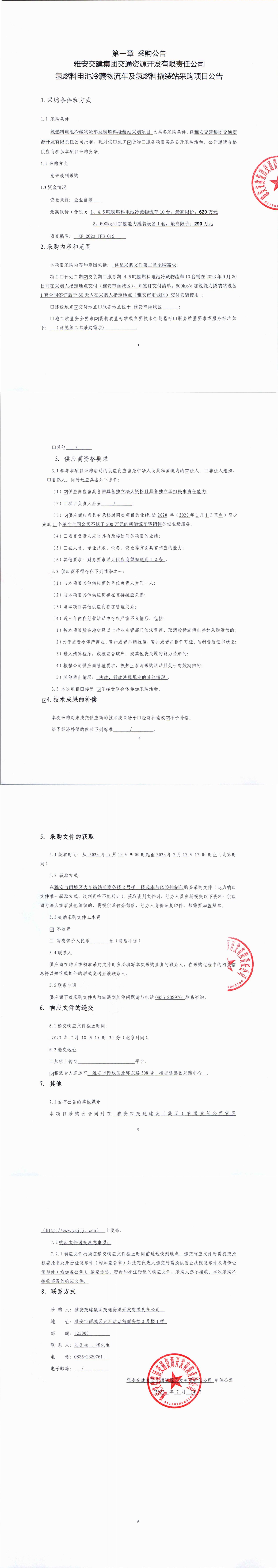 雅安交建集團(tuán)交通資源開發(fā)有限責(zé)任公司氫燃料電池冷藏物流車及氫燃料撬裝站采購項(xiàng)目公告