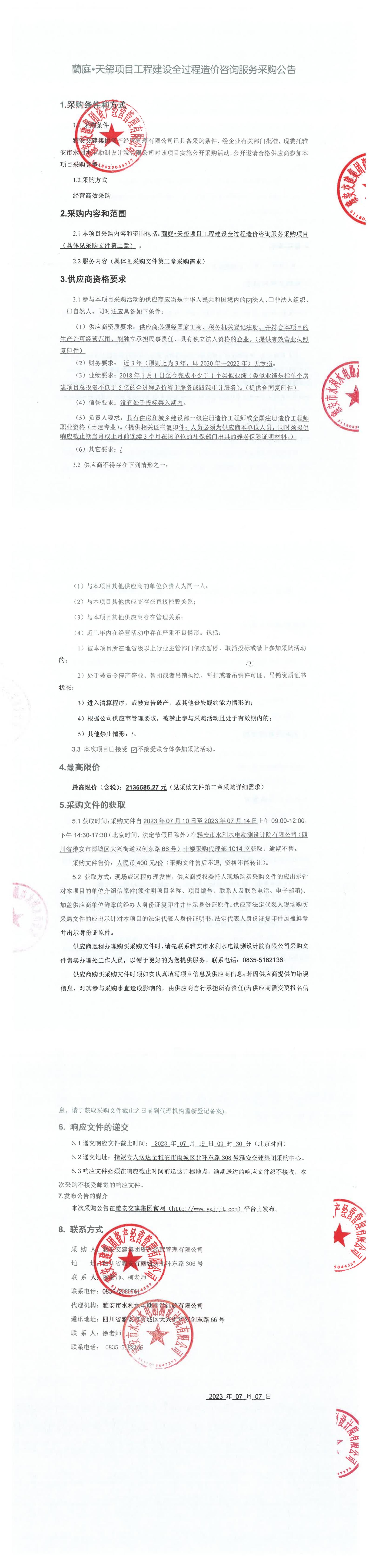 雅安交建集團資產經營管理有限公司蘭庭•天璽項目工程建設全過程造價咨詢服務采購公告