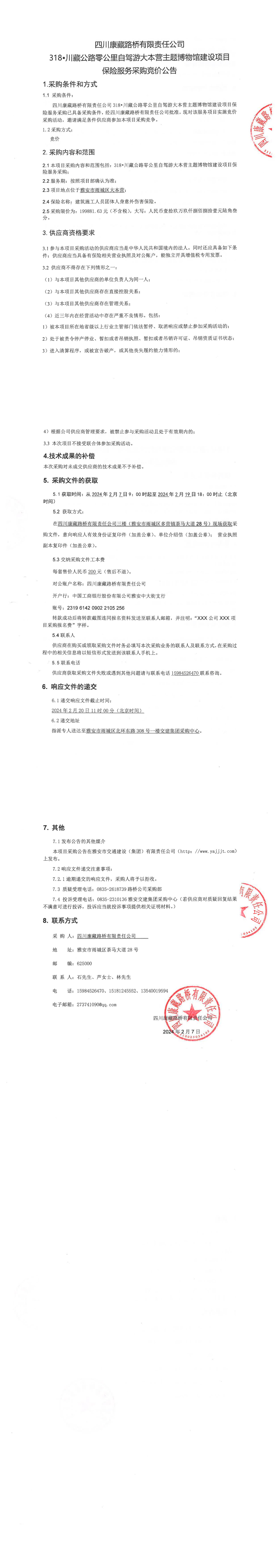 四川康藏路橋有限責(zé)任公司318•川藏公路零公里自駕游大本營主題博物館建設(shè)項(xiàng)目保險(xiǎn)服務(wù)采購公告