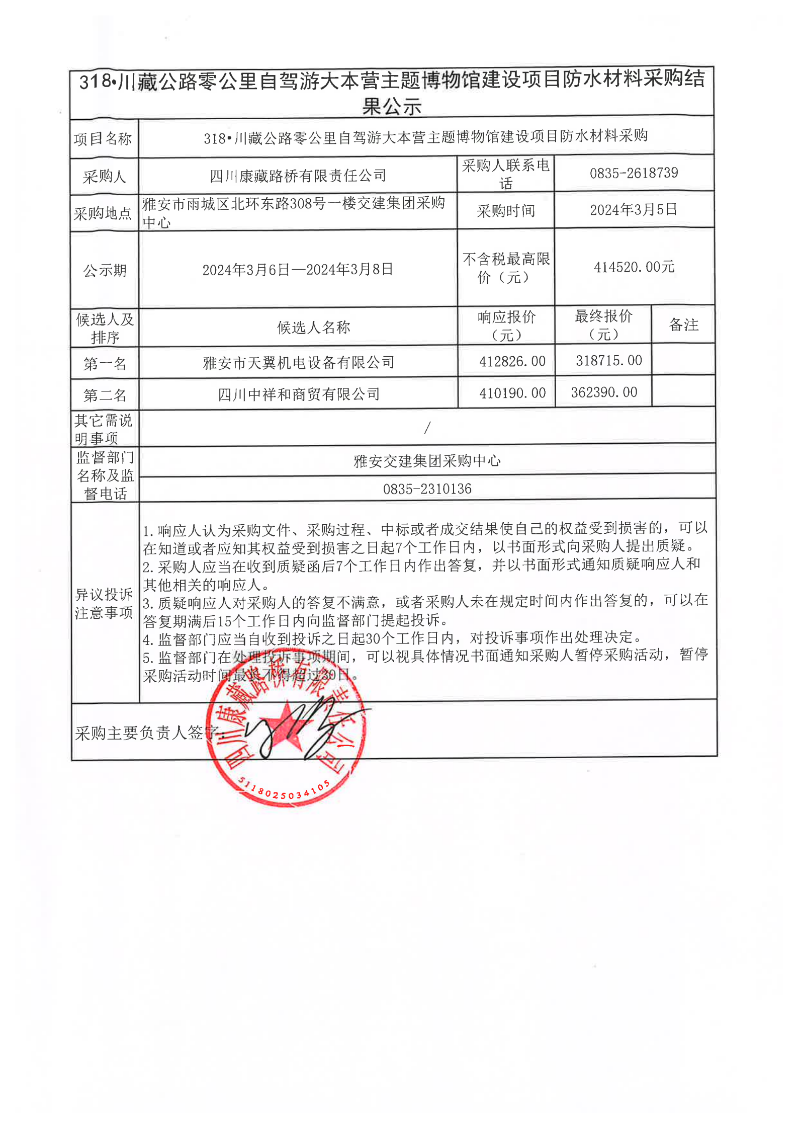 四川康藏路橋有限責(zé)任公司318·川藏公路零公里自駕游大本營主題博物館建設(shè)項目防水材料采購結(jié)果公示