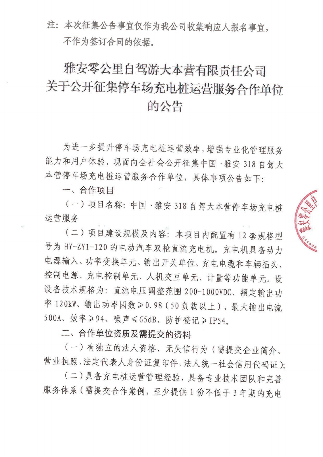 關(guān)于公開(kāi)征集停車(chē)場(chǎng)充電樁運(yùn)營(yíng)服務(wù)合作單位的公告