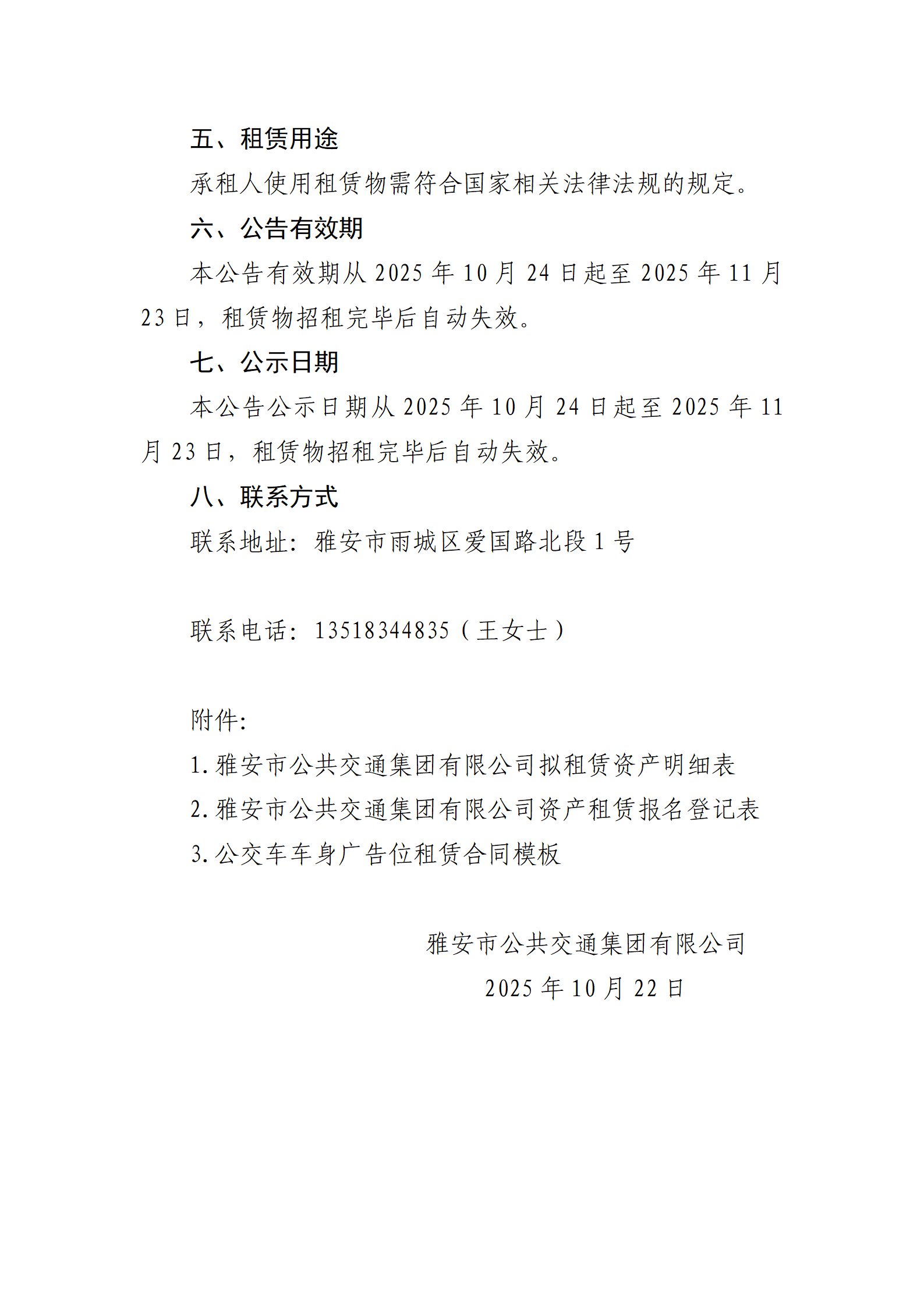 雅安市公共交通集團(tuán)有限公司 關(guān)于150輛公交車(chē)車(chē)身廣告位整體掛網(wǎng)招租的公告