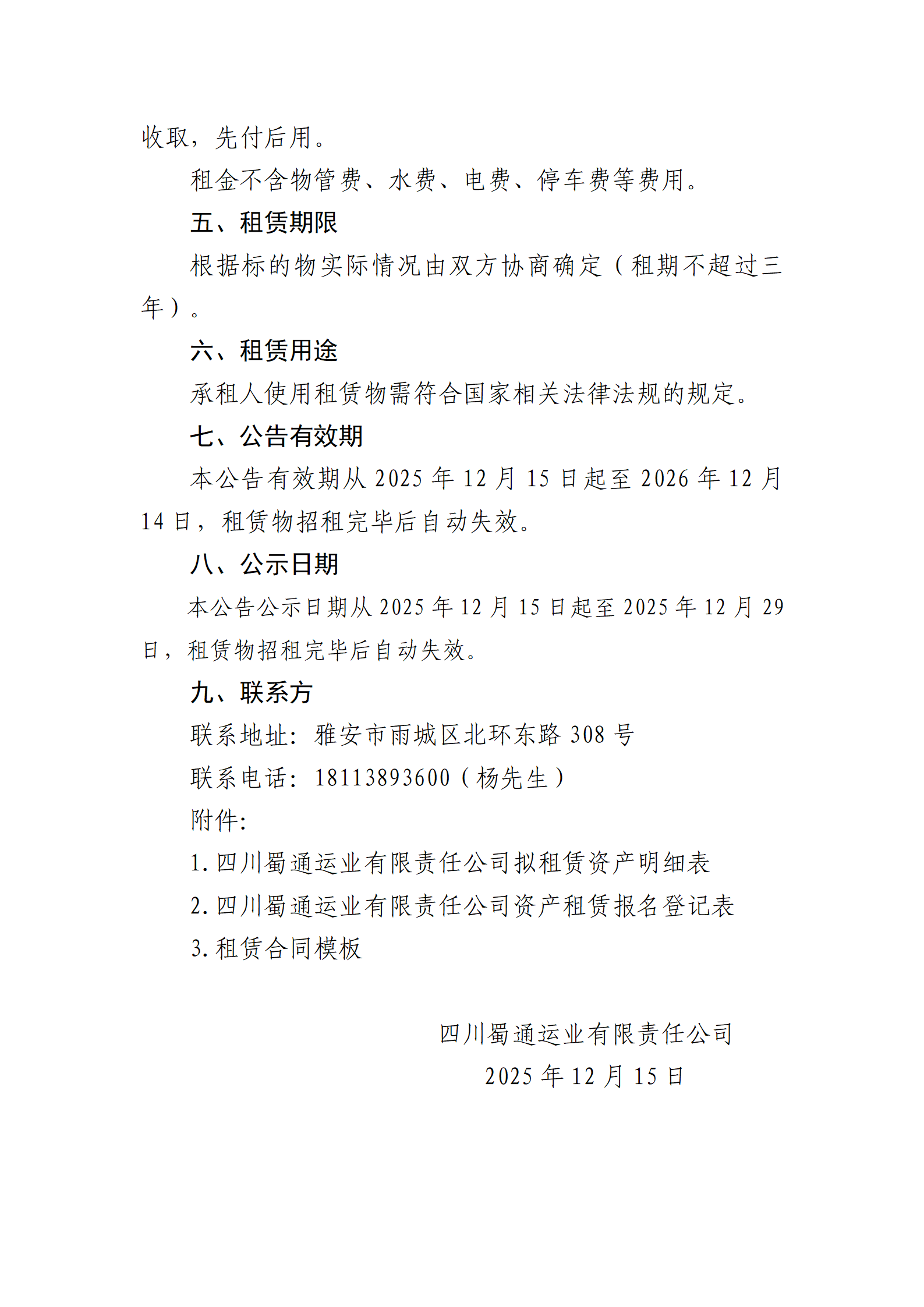 四川蜀通運(yùn)業(yè)有限責(zé)任公司關(guān)于蜀通公司各區(qū)縣閑置房屋商鋪場(chǎng)地掛網(wǎng)招租的公告