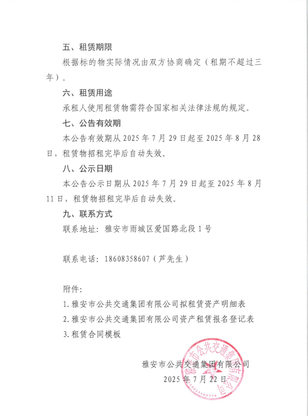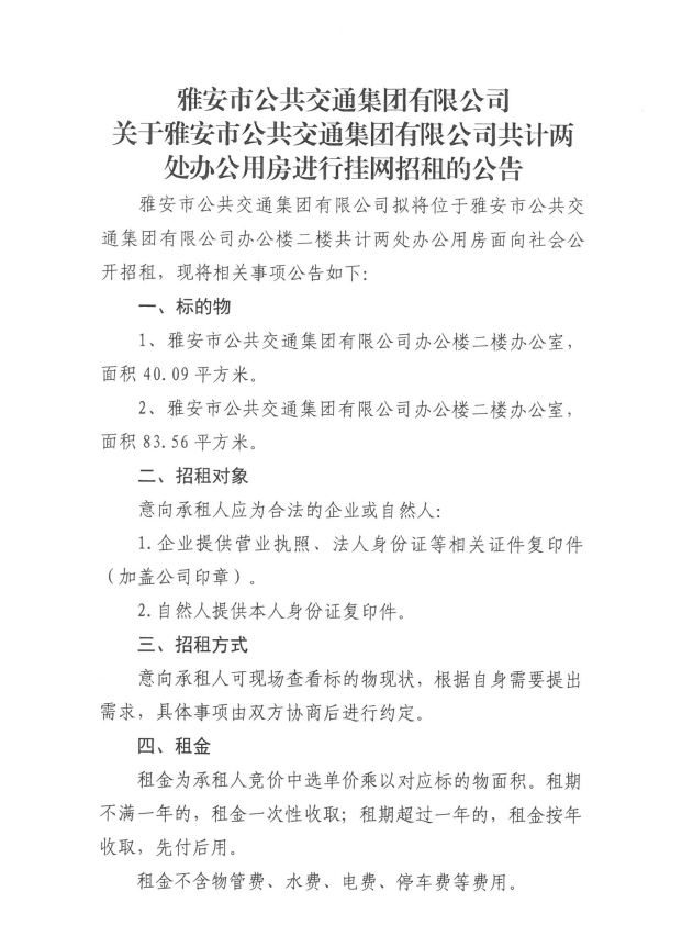 關(guān)于雅安市公共交通集團有限公司共計兩處辦公用房進行掛網(wǎng)招租的公告