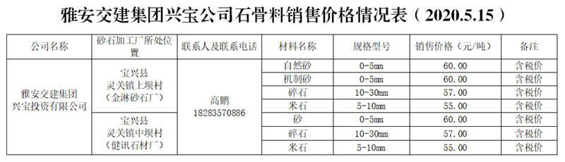 興寶投資有限公司。興寶公司是寶興縣人民政府指定寶興縣發(fā)展投資有限責(zé)任公司與雅安市交通建設(shè)(集團(tuán))有限責(zé)任公司共同組建的合資公司。目前,公司與兩家企業(yè)確定了代加工合作關(guān)系:一是寶興縣健迅石材廠;二是寶興縣金淋砂石有限公司;預(yù)計年生產(chǎn)能力約200萬噸。生產(chǎn)廠區(qū)距雨城區(qū)中心城區(qū)約55公里。