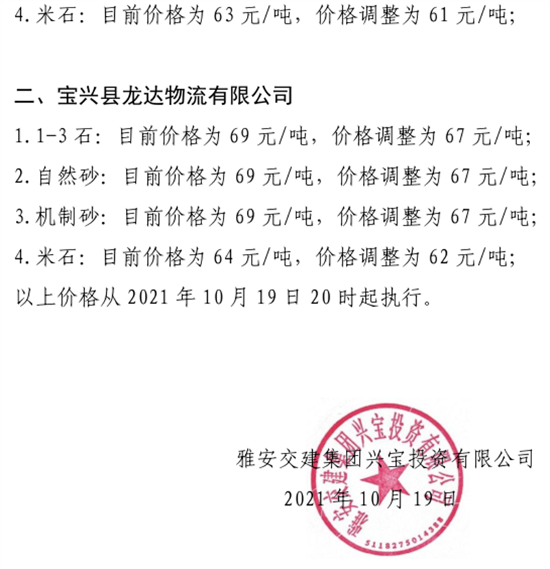 ÑŰ²½»½¨¼¯ˆFÔÆÊ¯¹«Ë¾êPÓÚÕ{Õû³ÉÆ·ÁÏäNÊÛƒr¸ñµÄ֪ͨ£¨2021.11.4£©