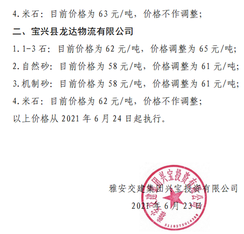ÑŰ²½»½¨¼¯ˆF(tu¨¢n)ÔÆÊ¯¹«Ë¾É°Ê¯¹ÇÁÏäNÊÛƒr¸ñÇé›r±í£¨2021.6.20£©