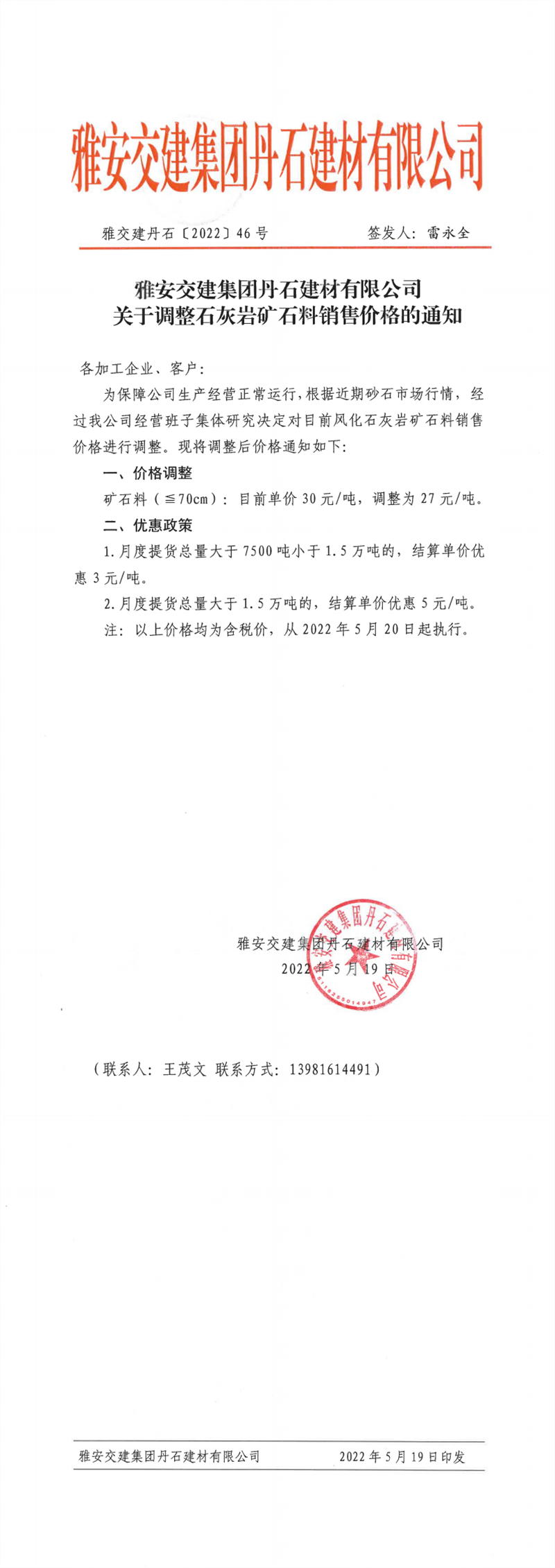 ÑŰ²½»½¨¼¯ˆFÅdŒš¹«Ë¾êP(gu¨¡n)ÓÚÕ{(di¨¤o)Õûɰʯ³ÉÆ·ÁÏäNÊÛƒr¸ñµÄ֪ͨ-2022-5-19
