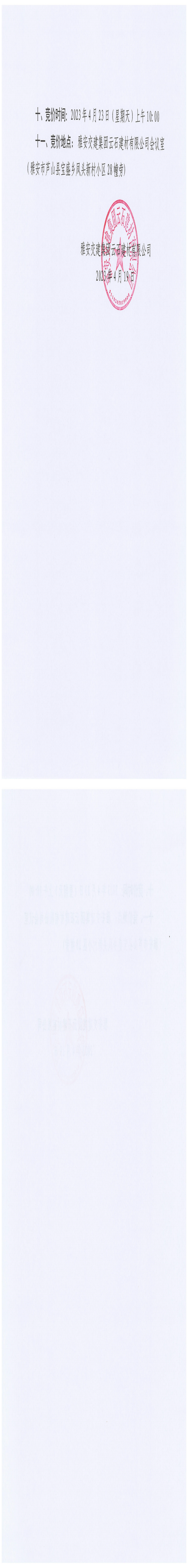 雅安交建集團(tuán)云石建材有限公司超規(guī)格石料拍賣成交公告(2023-4-7)
