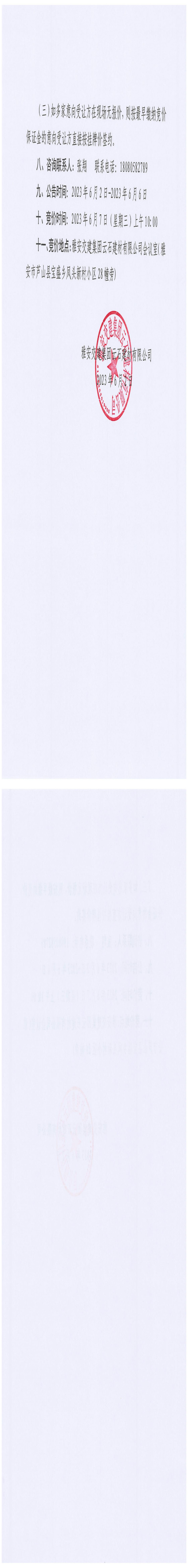 雅安交建集團(tuán)興寶投資有限公司寶興縣靈關(guān)鎮(zhèn)代碑寺土地整理項(xiàng)目5萬(wàn)噸細(xì)骨料競(jìng)價(jià)銷售公告(2023.6.5)